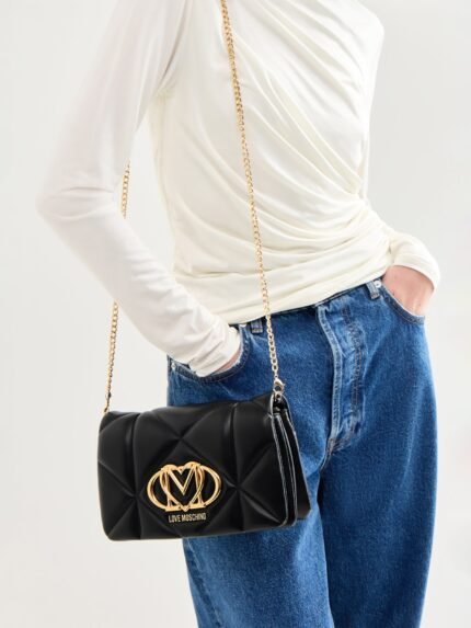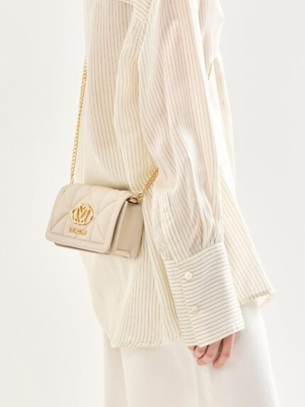 The Embossed Quilt Chain Crossbody Bag combines stylish quilted texture with a sleek chain strap for easy carrying. Its compact