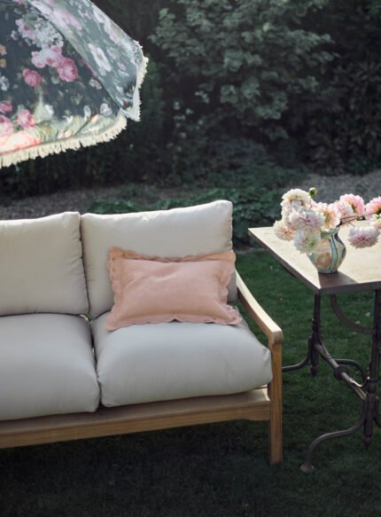 –Â A generously proportioned outdoor armchair featuring restful natural-hued cushions– The heritage-inspired design features a gently sloping arm, spindle backrest and