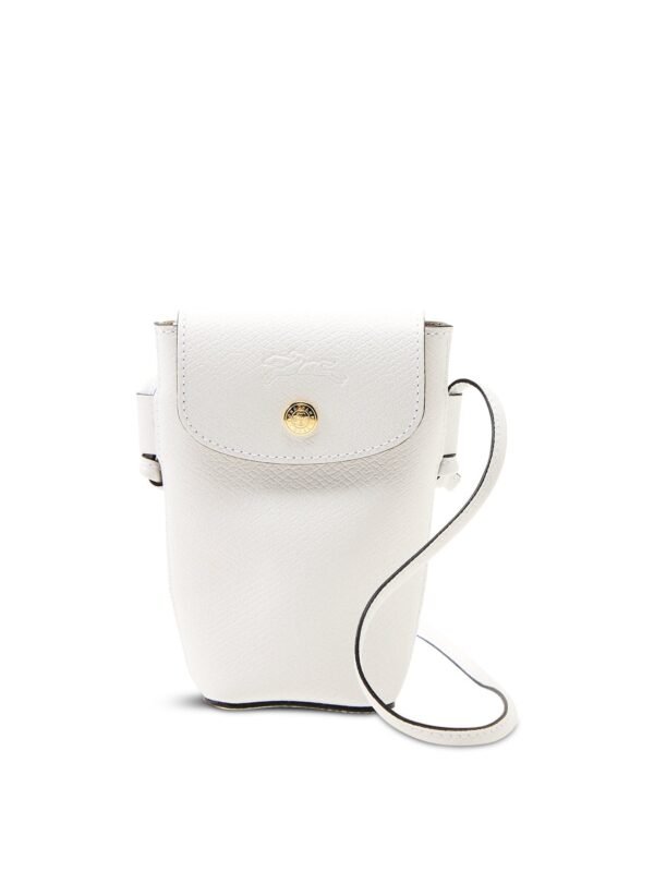 This Epure Crossbody Bag in small size features smooth white leather for a clean, elegant look. Its compact design offers
